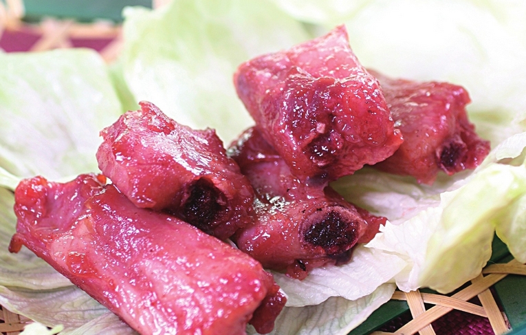 烤制时箱温和时间应控制好,分2次、高低火烤制,使排骨外焦里嫩。