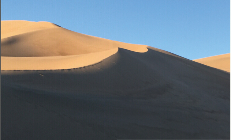 天完全亮了,天蓝得出奇,沙金得出奇,虽有点点风掠过,但是丝毫无法打破蓝金相衬的静籁,我们甚至不敢大声说话,目光所及之处,皆为美景。知道有些地方,并不需要摄影技术,只需要走到它的面前,美就自然流淌出来。