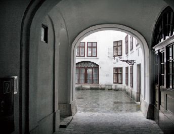 维也纳 Molker Bastei 8号老公寓门洞,贝多芬故居在四楼,推开右首的一扇门,就可以上楼了。