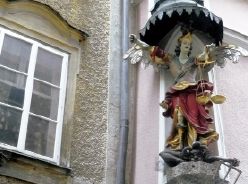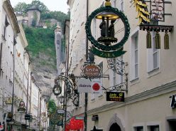 我所目击的传统集市只是萨尔茨堡的一面。一如法意英荷的古镇,人文与时尚的递进,历历可数,历历在目。一年一度的萨尔茨堡音乐节是欧美名牌乐团的超级盛典,在城堡下的小街,竟有中国当代艺术的专展广告,由一家豪华画廊经营,门面与内里又阔气,又精雅,隔壁店家则出售贵公子们玩耍的赛车摩托车之类高消费玩意儿。想起意大利托斯卡纳地区的小镇圣基米亚诺,全镇竖着好几座十四世纪的城堡,却也供着一家前卫画廊,老牌字号,在纽约和北京均设代理的分店。欧洲城乡素有良性的分合,当地人从来明白城里的一节节现代文明,哪些要,怎样要,哪些不要,怎样不要。譬如各地的传统工艺仍然存活着,而且兴旺,萨尔茨堡著名产业之一是以古老的工艺和造型锻造商店牌号,看照片吧,我能摄取的只是百分之一。沿城堡周边的小街闲逛,巡看私人店家展示手制的女衣男装,做工、用料,成熟内敛,非常奥地利,然而不土,外间的时兴也并非不知,却是安然自适,毫不轻佻,精巧橱窗的设计与摆放,在纽约亦难见到。