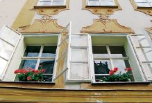萨尔茨堡莫扎特老家,右侧人型的正面是一位戴着军帽的小男孩。