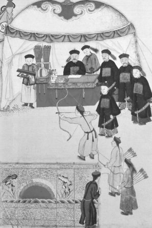 清人所绘射箭图(局部)