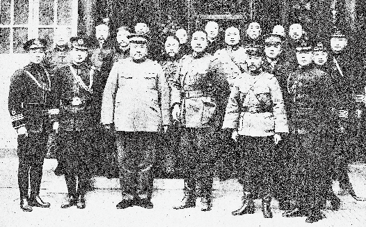 1926年4月,直奉联军的军阀将领们在北京聚会,拍下了上面这张合影。前排右起分别为毕庶澄、褚玉璞、张宗昌、杨清臣,后排有王揖唐、王占元、梁弘志、朱曜、吴光新、田中玉等人。