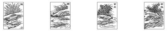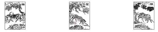 甝,白虎。<虎儵>,黑虎。<豸出>,无前足。