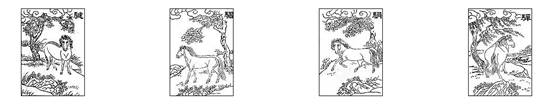 四蹢皆白,首。前足皆白,騱。后足皆白,翑。前右足白,启。左白,踦。后右足白,骧。左白,馵。