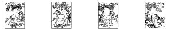 骊白杂毛,駂。黄白杂毛,駓。阴白杂毛,骃。苍白杂毛,骓。彤白杂毛,騢。