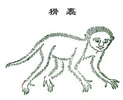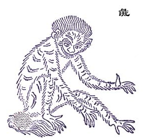 又西四百里,曰小次之山,其上多白玉,其下多赤铜。有兽焉,其状如猿,而白首赤足,名曰朱厌,见则大兵。