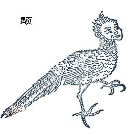 又东四百里,曰令丘之山,无草木,多火。其南有谷焉,曰中谷,条风自是出。有鸟焉,其状如枭,人面四目而有耳,其名曰颙,其鸣自号也,见则天下大旱。