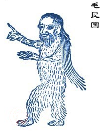 有毛民之国,依姓,食黍,使四鸟。禹生均国,均国生役采,役采生修鞈,修鞈杀绰人。帝念之,潜为之国,是此毛民。