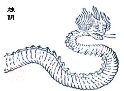 西北海之外,赤水之北,有章尾山。有神,人面蛇身而赤,直目正乘,其瞑乃晦,其视乃明,不食不寝不息,风雨是谒。是烛九阴,是谓烛龙。