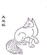 又东三百里,曰青丘之山,其阳多玉,其阴多青雘。有兽焉,其状如狐而九尾,其音如婴儿,能食人;食者不蛊。有鸟焉,其状如鸠,其音若呵,名曰灌灌,佩之不惑。英水出焉,南流注于即翼之泽。其中多赤鱬,其状如鱼而人面,其音如鸳鸯,食之不疥。