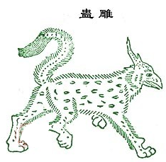 又东五百里,曰鹿吴之山,上无草木,多金石。泽更之水出焉,而南流注于滂水。水有兽焉,名曰蛊雕,其状如雕而有角,其音如婴儿之音,是食人。