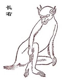 东南四百五十里曰长右之山,无草木,多水。有兽焉,其状如禺而四耳,其名长右,其音如吟,见则郡县大水。