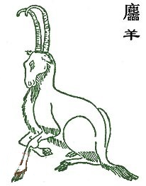 又西三百里,曰大次之山,其阳多垩,其阴多碧,其兽多牜乍牛、麢羊。