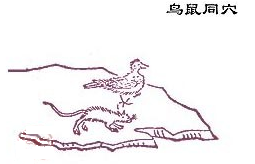 又西七十里,曰羭次之山,漆水出焉,北流注于渭。其上多棫橿,其下多竹箭,其阴多赤铜,其阳多婴垣之玉。有兽焉,其状如禺而长臂,善投,其名曰嚣。有鸟焉,其状如枭,人面而一足,曰橐{非巴},冬见夏蛰,服之不畏雷。