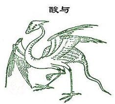 《西次三经》之首,曰崇吾之山,在河之南,北望冢遂,南望之泽,西望帝之搏兽之丘,东望<虫焉>渊。有木焉,员叶而白柎,赤华而黑理,其实如枳,食之宜子孙。有兽焉,其状如禺而文臂,豹虎而善投,名曰举父。有鸟焉,其状如凫,而一翼一目,相得乃飞,名曰蛮蛮,见则天下大水。