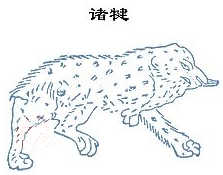 又东三百四十里,曰尧光之山,其阳多玉,其阴多金。有兽焉,其状如人而彘鬛,穴居而冬蛰,其名曰猾褢,其音如斫木,见则县有大繇。