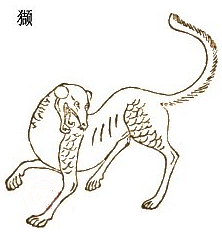 又东四百里,曰亶爰之山,多水,无草木,不可以上。有兽焉,其状如狸而有髦,其名曰类,自为牝牡,食者不妒。