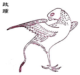 东五百里,曰祷过之山,其上多金玉,其下多犀、兕,多象。有鸟焉,其状如,而白首、三足、人面,其名曰瞿如,其鸣自号也。泿水出焉,而南流注于海。其中有虎蛟,其状鱼身而蛇尾,其音如鸳鸯,食者不肿,可以已痔。