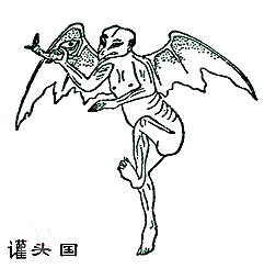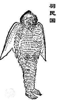 西北海外,黑水之北,有人有翼,名曰苗民。颛顼生驩头,驩头生苗民,苗民釐姓,食肉。有山名曰章山。