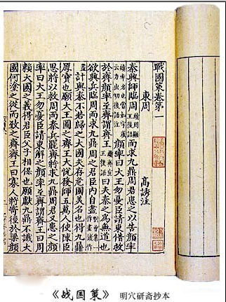 护左都水使者、光禄大夫臣向言:所校中《战国策》书,中书余卷,错乱相糅莒。又有国别者八篇,少不足。臣向因国别者,略以时次之;分别不以序者以相补,除复重,得三十三篇。本字多误脱为半字,以“赵”为“肖”,以“齐”为“立”,如此字者多。中书本号或曰《国策》,或曰《国事》,或曰《短长》,或曰《事语》,或曰《长书》,或曰《修书》。臣向以为,战国时游士辅所用之国,为之策谋,宜为《战国策》。其事继《春秋》以后,讫楚、汉之起,二百四十五年间之事,皆定以杀青,书可缮写。