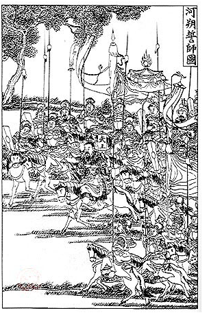 禹乃会群后,誓于师曰;“济济有众,咸听朕命。蠢兹有苗,昏迷不恭,侮慢自贤,反道败德,君子在野,小人在位,民弃不保,天降之咎,肆予以尔众士,奉辞伐罪。尔尚一乃心力,其克有勋。”