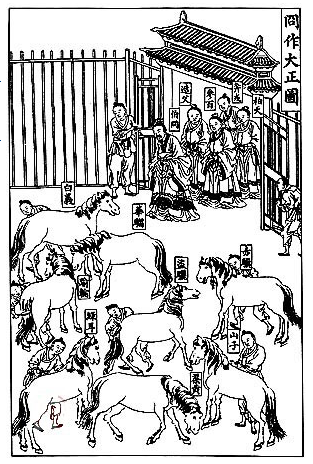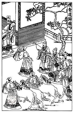 帝曰:“畴若予上下草木鸟兽?”佥曰:“益哉!”帝曰:“俞,咨!益,汝作朕虞。”益拜稽首,让于朱虎、熊罴。帝曰:“俞,往哉!汝谐。”