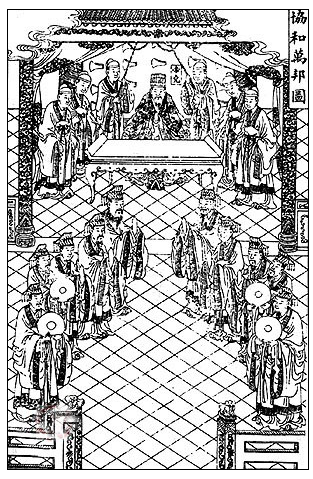 曰若稽古帝尧,曰放勋,钦、明、文、思、安安,允恭克让,光被四表,格于上下。克明俊德,以亲九族。九族既睦,平章百姓。百姓昭明,协和万邦。黎民于变时雍。