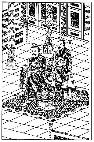 今予小子,祗勤于德,夙夜不逮。仰惟前代时若,训迪厥官。立太师、太傅、太保,兹惟三公。论道经邦,燮理阴阳。官不必备,惟其人。少师、少傅、少保,曰三孤。贰公弘化,寅亮天地,弼予一人。冢宰掌邦治,统百官,均四海。司徒掌邦教,敷五典,扰兆民。宗伯掌邦礼,治神人,和上下。司马掌邦政,统六师,平邦国。司冠掌邦禁,诘奸慝,刑暴乱。司空掌邦土,居四民,时地利。六卿分职,各率其属,以倡九牧,阜成兆民。六年,五服一朝。又六年,王乃时巡,考制度于四岳。诸侯各朝于方岳,大明黜陟。”
