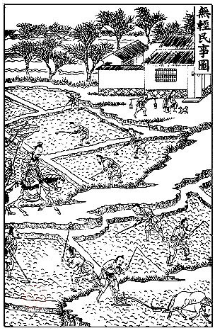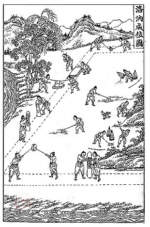 荆河惟豫州。伊、洛、瀍、涧既入于河,荥波既猪。导菏泽,被孟猪。厥土惟壤,下土坟垆。厥田惟中上,厥赋错上中。厥贡漆、枲,絺、纻,厥篚纤、纩,锡贡磬错。浮于洛,达于河。