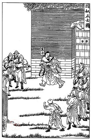 甲戌,我惟征徐戎。峙乃糗粮,无敢不逮;汝则有大刑!鲁人三郊三遂,峙乃桢榦。甲戌,我惟筑,无敢不供;汝则有无余刑,非杀。鲁人三郊三遂,峙乃刍茭,无敢不多;汝则有大刑!”