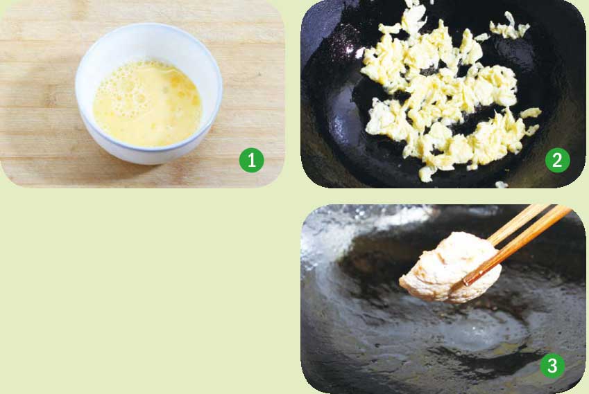 ■ 要尽量使锅的内壁全部粘上炒过的鸡蛋的油。