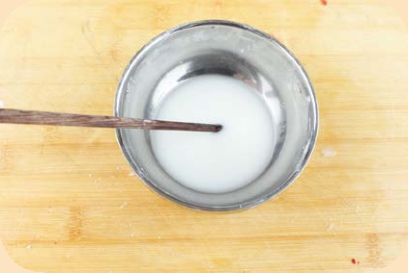 1. 在淀粉中加少许冷水搅匀,调成水淀粉(如图)。