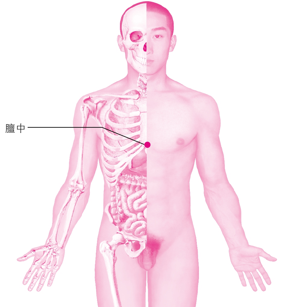 手法: 以一手中指上下擦膻中穴,5分钟,每天晚上1次。