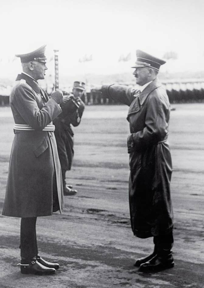 1937年9月14日,在纽伦堡的阅兵式上,身着元帅礼服、手持节杖的布洛姆贝格向希特勒致敬。虽然希特勒的脸上仍然洋溢着笑容,但他心中已经打算除掉这个妨碍他的元帅。