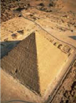 在公元前3世纪,腓尼基旅行家昂蒂帕克记下了他眼中的“世界七大奇迹”,其中吉萨的金字塔名列首位。埃及吉萨共有10座金字塔,它们耸立在尼罗河西岸的沙漠中,离古埃及的首都孟菲斯不远。3座最大、保存最完好的金字塔是由第四王朝的3位法老胡夫、卡夫拉和孟卡拉建造的,大致的建造年代是在公元前2600年至公元前2500年。其中胡夫金字塔高146.6米,底边长230.35米;卡夫拉金字塔高143.5米,底边长215.25米;孟卡拉金字塔高66.4米,底边长108.04米。