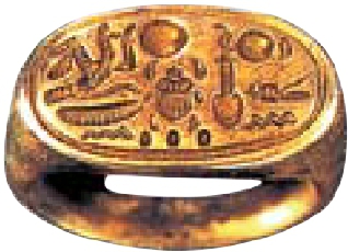 这枚法老埃赫那吞的印章戒指呈马镫形,上面刻有法老埃赫那吞的封号,还有一句不完整的赞美词:全埃及都崇拜。