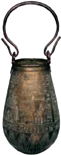 玻璃制品,通体彩绘。据考证是埃及第18王朝的作品,反映出当时埃及的玻璃制作工艺已达到很高的水准。