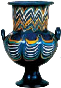 玻璃制品,通体彩绘。据考证是埃及第18王朝的作品,反映出当时埃及的玻璃制作工艺已达到很高的水准。