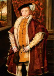 亨利八世一共娶了6位妻子,他的第三任妻子简·西摩为他生下了盼望已久的儿子,即后来的爱德华六世。1547年,当国王去世时,9岁的爱德华六世成为国王,由他的信仰新教的舅舅萨姆塞特公爵爱德华·西摩摄政。