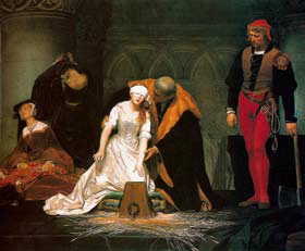 1553年,亨利七世的曾孙女、15岁的格雷被指定为英国王位继承人。但这位女王仅在位9天,就被迫让位给受到普遍支持的玛丽女王。格雷被囚禁,并于1554年被斩首于伦敦塔上。
