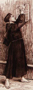 马丁·路德张贴引起宗教改革的《九十五条论纲》。马丁·路德,16世纪德国宗教改革运动的发起者,基督教新教路德宗的创立人。