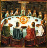不列颠凯尔特人的神话中,亚瑟王和他的圆桌骑士与圣杯在一起聚会。