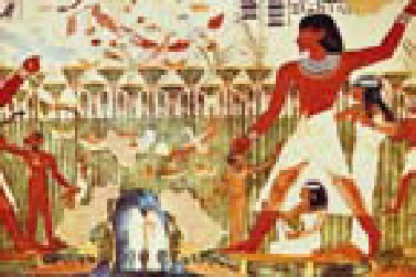驴子驮着收割的麦子来到打麦场,人们将它们平整地铺起来,赶着驴子和牛来践踏,以使麦粒与壳分离。农民将收割物的十分之一交给国王,然后就可以全家人聚集在一块品味丰收,分享喜悦。被誉为“历史之父”的希罗多德到达埃及后惊讶地发现,这里的居民比世界上任何其他民族都易于不费力气而且轻松地取得大地的果实。农民们等到尼罗河水自行泛滥后,将种子抛撒在田里,然后让猪去踏这些种子,此后便是等待收获的说法未必完全属实,但也确实反映了尼罗河给埃及人民的农业生活带来了极大的恩惠。
