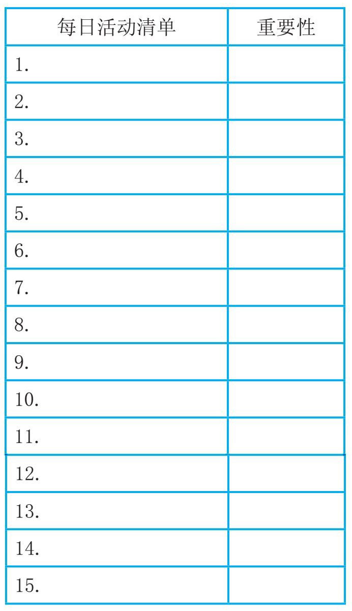 因为你把各项活动都按照重要性分了类,所以你的每日活动清单就变得更为有效了。这有助于你做决定,因为你知道自己在做什么,并且知道这件事的相对重要性。