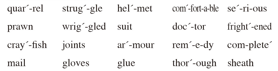 2. Give six words ending in -le (like struggle ), and their meanings.