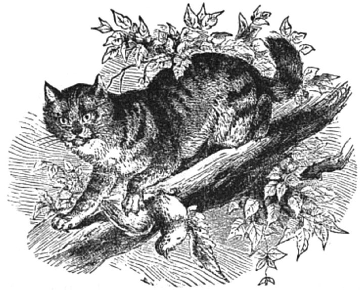 There are wild cats, which live in the woods. They spend most of their time on trees, where they catch birds and rob their nests. This cat is like one of them.