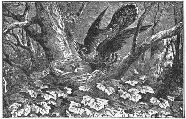 The European cuckoo, like the swallow, is a bird of passage. It visits the British islands in April, and leaves about the beginning of July. It builds no nest, but lays its eggs in the nests of other birds preferring that of the hedge sparrow.