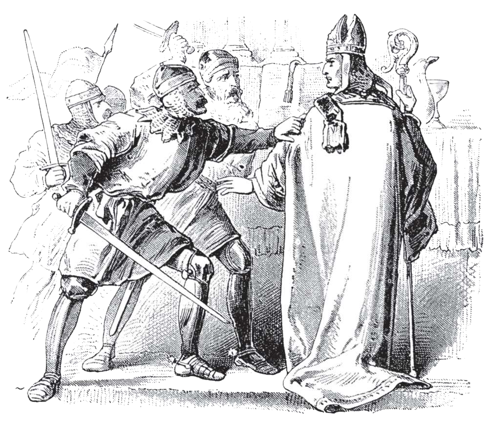 5. Four of his knights, hearing what was said, and being very jealous of Becket's power, secretly crossed over to England, and went to Canterbury