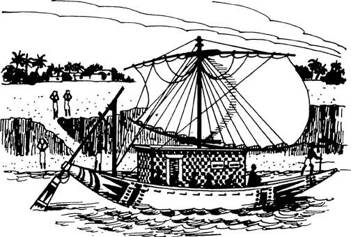 Soon enough people were living so close together that they were living in what we call a town. Then people in these towns began to build little boats, then bigger boats. Soon the boats were sailing up and down the river to the next town and to towns farther away. The towns began to trade with each other. And sometimes the towns began to fight with each other.
